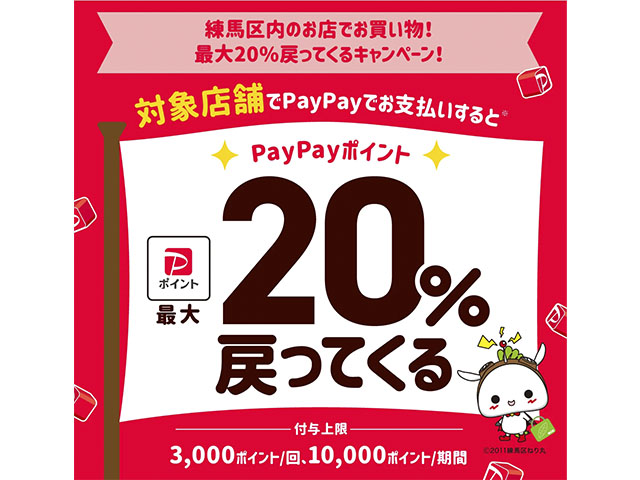 練馬区のとってもお得なキャンペーンが始まるそうです♪当店も、対象店舗となりますので、ぜひご利用ください。 2026年 4月15日〜6月14日まで(予定)PayPayのお支払いで、PayPayのポイントが最大20%戻ってくる!(3000ポイント/回)(10,000ポイント/期間... Information
